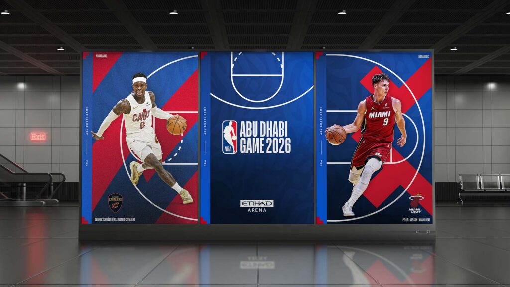 This NBA brand campaign was developed to define how the league authentically shows up in the Middle East, with a particular focus on the UAE. Rather than skimming the surface, the approach centers on building a visual identity that genuinely reflects the region’s deep and evolving basketball culture. The design blends modern and traditional influences, drawing on pattern-based elements inspired by Arabic calligraphy found in local architecture. These are paired with dynamic graphic assets that echo the energy of urban basketball courts across Abu Dhabi and Dubai. The result is a cohesive brand language that connects with local audiences while elevating the NBA’s presence—making it feel rooted, relevant, and truly at home in the Middle East.